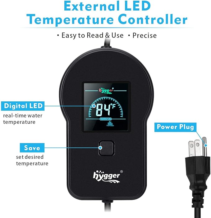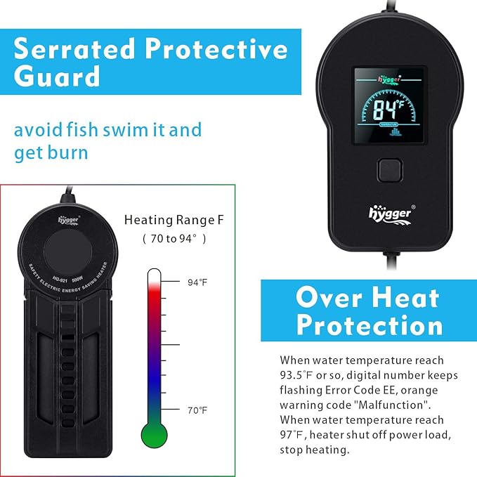 hygger Fast Heating Aquarium Heater 500W with Digital Controller for 60-120 Gallon Fish Tank Cichild Turtle Pond Accurate Adjustable Temperature