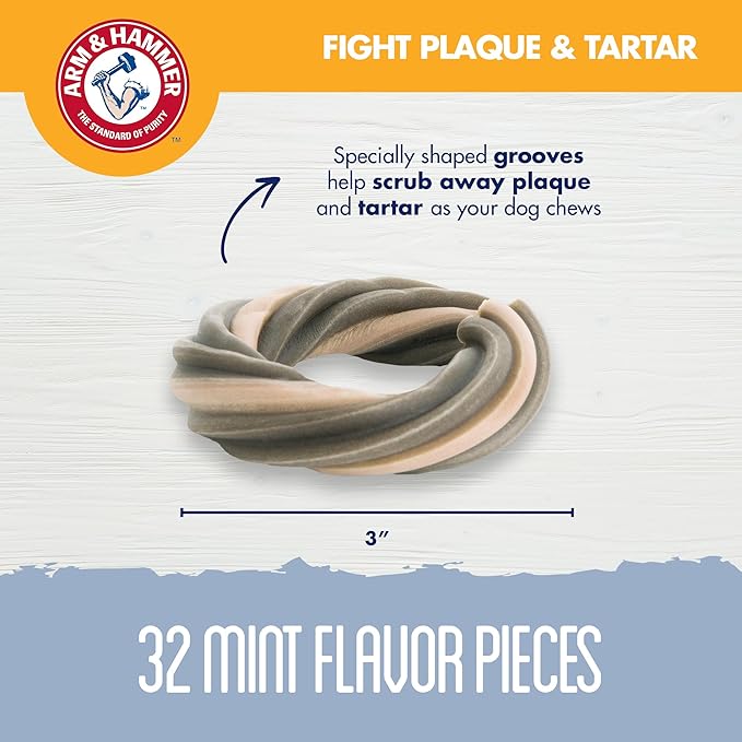 Arm & Hammer for Pets Smoothies Dental Treats for Dogs with Baking Soda and Calcium, Help Fight Bad Breath, Plaque & Tartar without Brushing, Mint, Ring Shaped, 32 Pcs (Packaging may vary)