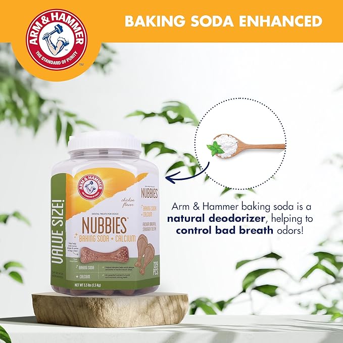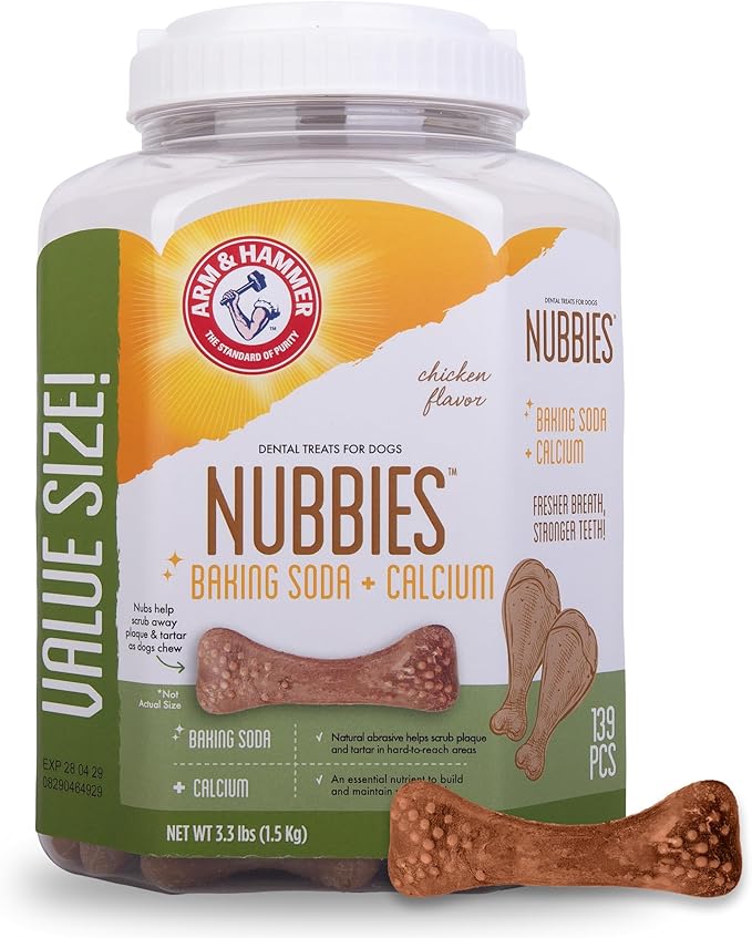 Arm & Hammer for Pets Nubbies Dental Treats for Dogs with Baking Soda and Calcium, Treat Chews Help Fight Bad Breath, Plaque & Tartar, Chicken, Value Bucket, 139 Pcs (Packaging may vary)