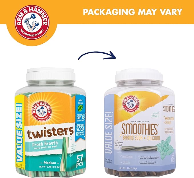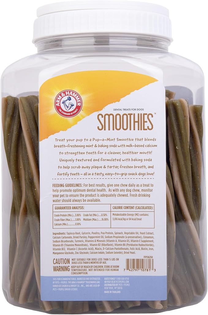 Arm & Hammer for Pets Smoothies Dental Treats for Dogs with Baking Soda and Calcium, Treat Chews Help Fight Bad Breath, Plaque & Tartar without Brushing, Mint, 57 Pcs (Packaging may vary)