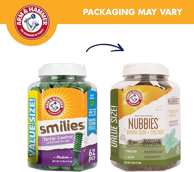 Arm & Hammer for Pets Nubbies Dental Treats for Dogs with Baking Soda and Calcium, Treat Chews Help Fight Bad Breath, Plaque & Tartar without Brushing, Md Size Mint, 62 Pcs (Packaging may vary)