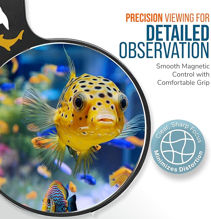 Flipper DeepSee 5" Magnetic Aquarium Viewer – Optical-Grade Magnifying Lens for Glass & Acrylic Tanks up to 5/8" Thick – Hands-Free Underwater Viewing for Fish, Corals & Aquarium Photography – Black