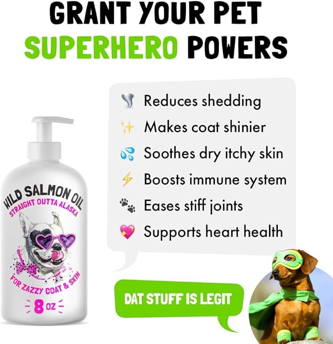 - Help Your Pet Stay In Great Shape - the rich fatty acids found in Salmon Oil have been shown to support joint, heart, and immune function to keep your four-legged friend feeling lively and active every day, without the fuss.