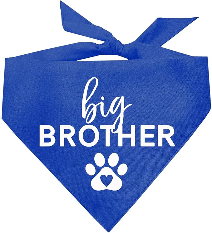 Big Brother Heart Paw Dog Bandana | 100% Cotton Adjustable Triangle | Pregnancy Announcement Photoshoot Prop | New Baby | Made in USA | Matching Family | Royal One Size (87)