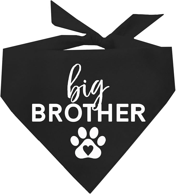 Big Brother Heart Paw Dog Bandana | 100% Cotton Adjustable Triangle | Pregnancy Announcement Photoshoot Prop | New Baby | Made in USA | Matching Family | Black One Size (87) GB
