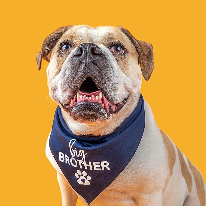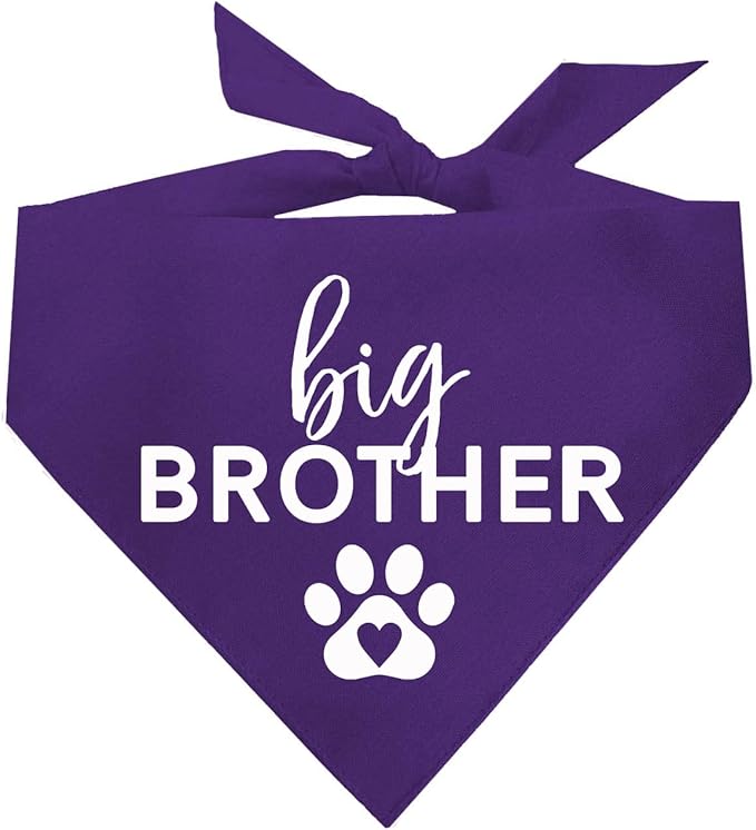 Big Brother Heart Paw Dog Bandana | 100% Cotton Adjustable Triangle | Pregnancy Announcement Photoshoot Prop | New Baby | Made in USA | Matching Family | Purple X-Small (87)