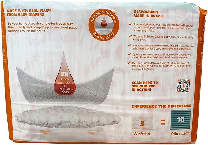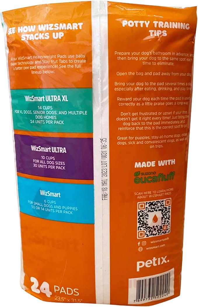 WizSmart Heavyweight Dog Pee Pads for Large Dogs, Puppies, Seniors – Ultra Absorbent, Leak Proof, Odor Control, Quick Dry, XL Training Pads with Stay Put Tabs – 23.5" x 31.5", 14 Cup Capacity