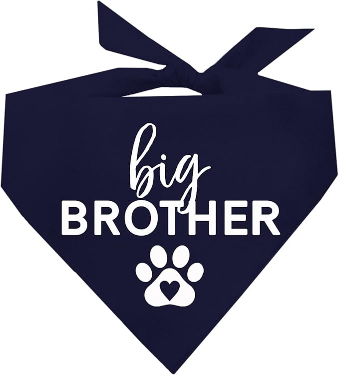 Big Brother Heart Paw Dog Bandana | 100% Cotton Adjustable Triangle | Pregnancy Announcement Photoshoot Prop | New Baby | Made in USA | Matching Family | Navy One Size (87) GB
