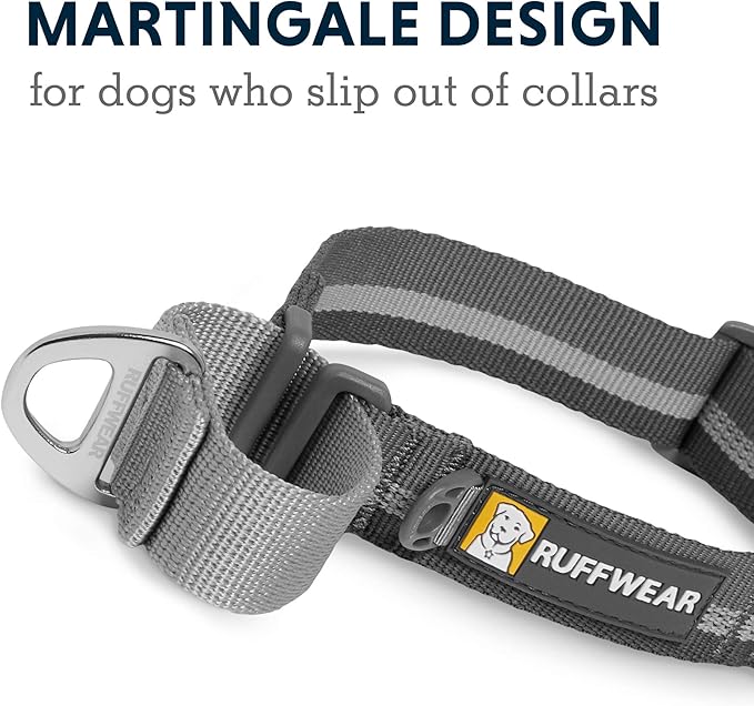 Ruffwear, Web Reaction Dog Collar, Escape-Proof Security Buckle, Adjustable Anti-Slip Martingale Collar with Durable Nylon Tubelok Webbing & Silent ID Attachment, Granite Gray, 23"-26"