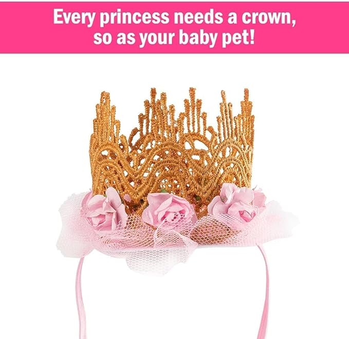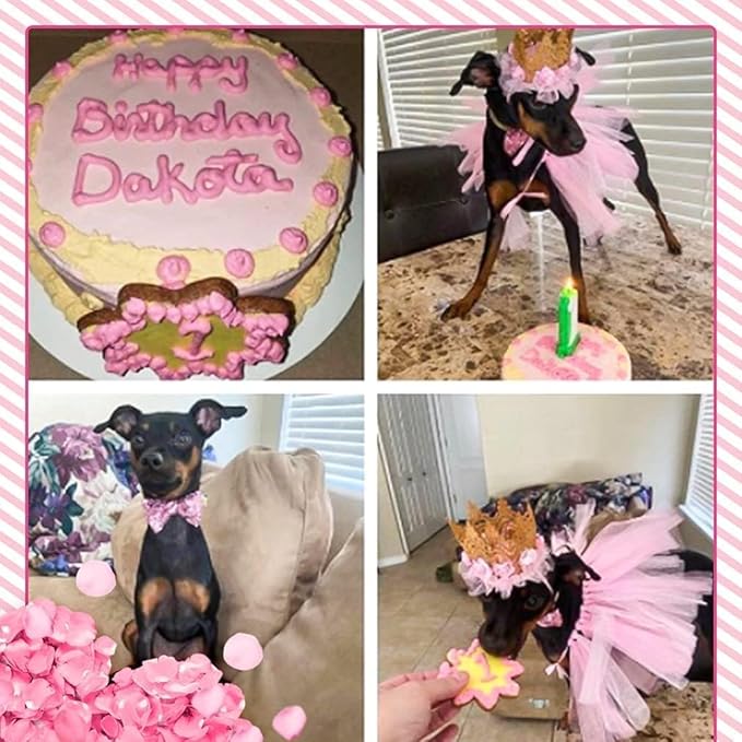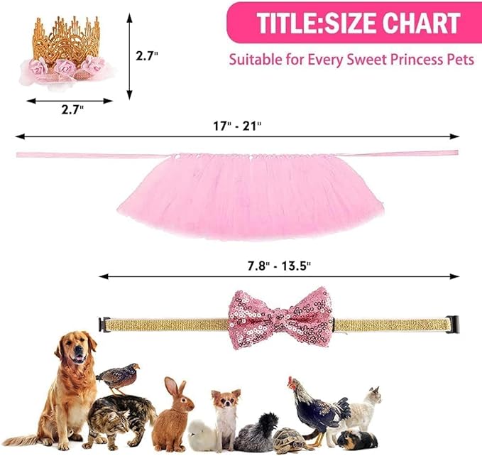 BINGPET Doggy Tutu Skirt Dog Cat Birthday Party Supplies,Cat Dogs Wedding Dresses with Bowtie and Dog Party Hats Princess Crown Hat Set,Sweet Gift for Small to Medium Dogs Cat