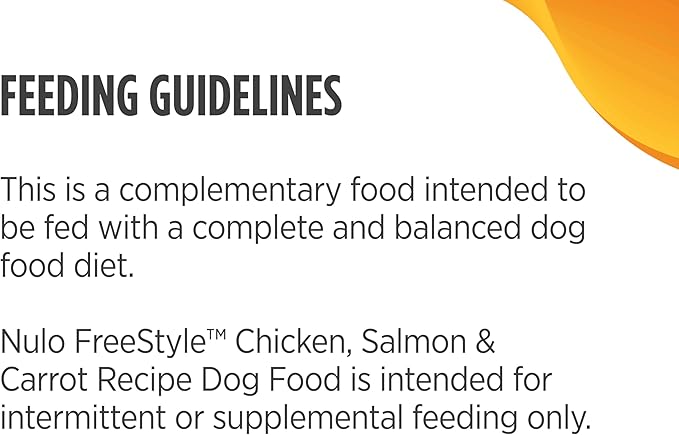 - CHICKEN, SALMON & CARROT RECIPE - Nulo Freestyle Puppy & Dog Wet Food Toppers have no grains, artificial flavors, or preservatives. These real meat dog toppers feature natural animal-based protein and only 3 wholesome ingredients in each pouch. Pack of 6, 2.8 Oz each.