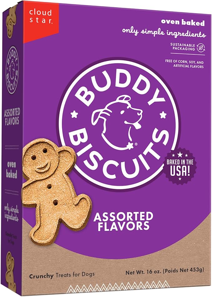 Buddy Biscuits 16 oz. Box of Crunchy Dog Treats Made with Assorted Flavors of Roasted Chicken, Grilled Beef, and Sharp Cheddar