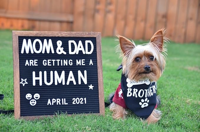 About This Pregnancy Announcement Dog Bandana:Pack of 1 black pet scarf,readable white letters One Size Fits Most:It is for small... Read more