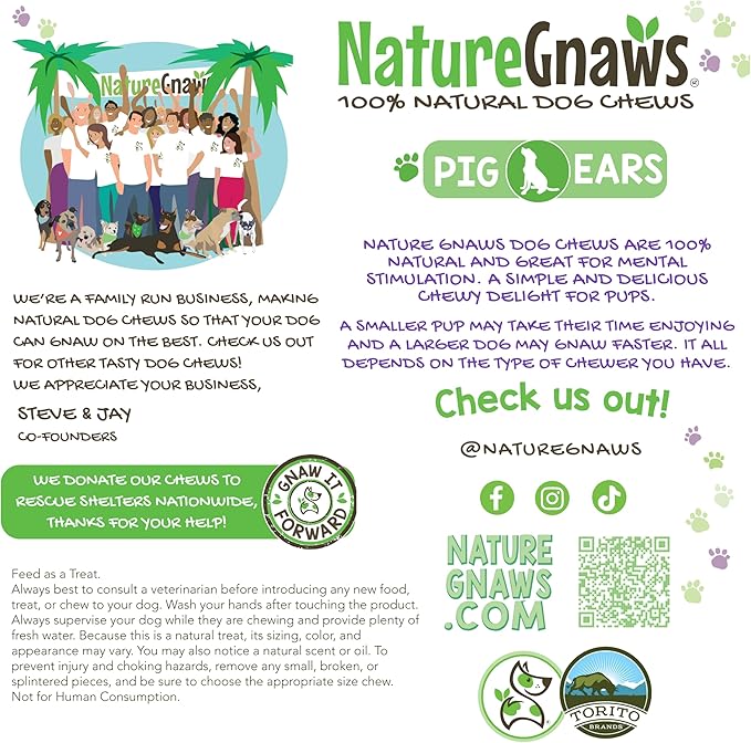 Nature Gnaws Pig Ears for Dogs (8 Count) - Thick Long Lasting for Aggressive Chewers and Large Dogs - Natural Pork Dog Chew Bones - Rawhide Free