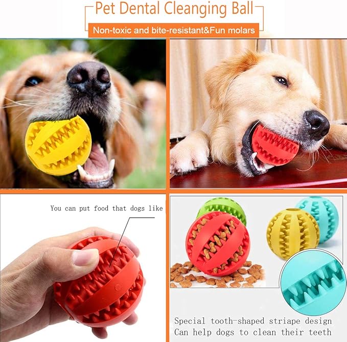 Sunglow 2 Pack Dog Toy Ball - Nontoxic Bite Resistant Teething Toys for Small/Medium/Large Dog and Puppy Cat, Dog Pet Food Treat Feeder Chew Tooth Cleaning Exercise Game IQ Training