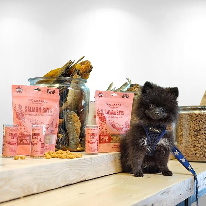 Polkadog Salmon Says Training Bits - Omega-3 Rich, Low Fat Healthy Dog Treat - Digestible, Vitamin & Mineral Packed Dog Snacks - Crunchy 3-Ingredient Treat, Ideal for Dogs with Allergies - 7oz