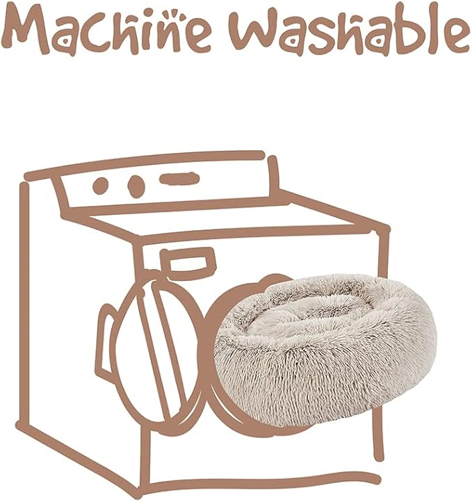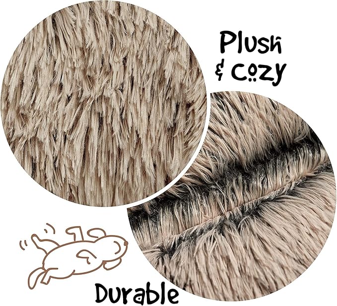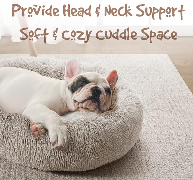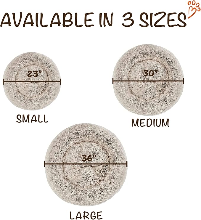 Friends Forever Donut Dog Bed Faux Fur Fluffy Calming Sofa For Large Dogs, Soft & Plush Anti Anxiety Pet Couch For Dogs, Machine Washable Coco Pet Bed with Non-Slip Bottom, 36"x36"x8" Tan
