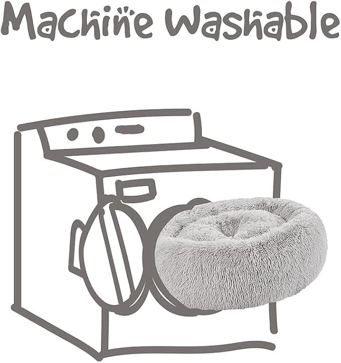 Friends Forever Donut Dog Bed Faux Fur Fluffy Calming Sofa For Small Dogs, Soft & Plush Anti Anxiety Pet Couch For Dogs, Machine Washable Coco Pet Bed with Non-Slip Bottom, 23"x23"x6" Grey