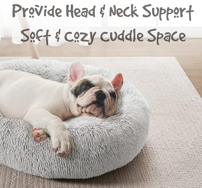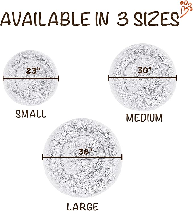 Friends Forever Donut Dog Bed Faux Fur Fluffy Calming Sofa For Large Dogs, Soft & Plush Anti Anxiety Pet Couch For Dogs, Machine Washable Coco Pet Bed with Non-Slip Bottom, 36"x36"x8" Ivory