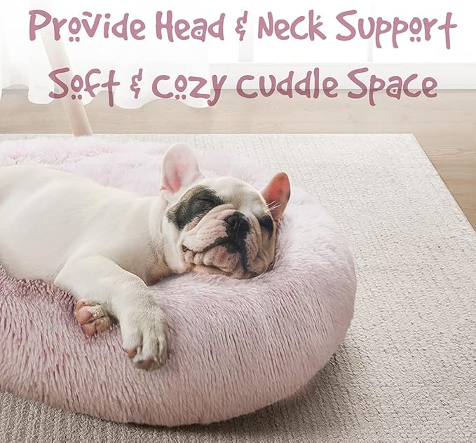Friends Forever Donut Dog Bed Faux Fur Fluffy Calming Sofa For Large Dogs, Soft & Plush Anti Anxiety Pet Couch For Dogs, Machine Washable Coco Pet Bed with Non-Slip Bottom, 36"x36"x8" Pink