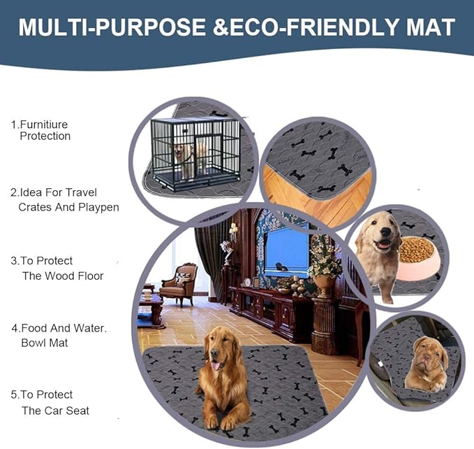 • Multipurpose - Reusable extra large - 36" x 72"dog potty pet training pads , use in dog kennel & dog crates for large dogs, training puppies pee in playpen or assisting incontinence elderly,as whelping pads & incontinence bed pads & waterproof floor mat for pets. They are ideal for protecting carpet,wood floor,furniture,sofa,car seats during travel.