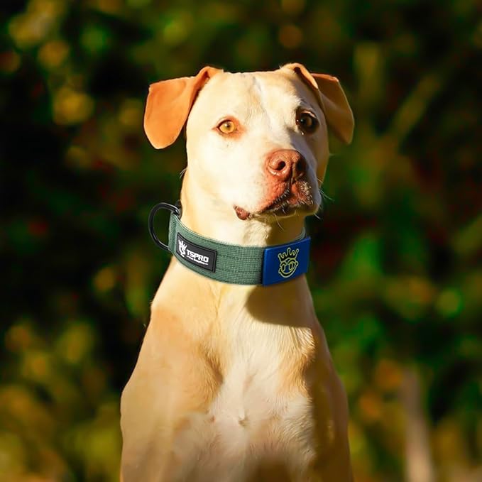 TSPRO Premium Dog Collars Tactical Dog Collar with Patch and Heavy Duty Quick-Release Metal Buckle Durable Thick and Adjustable for Medium to Large Dogs (Green L)
