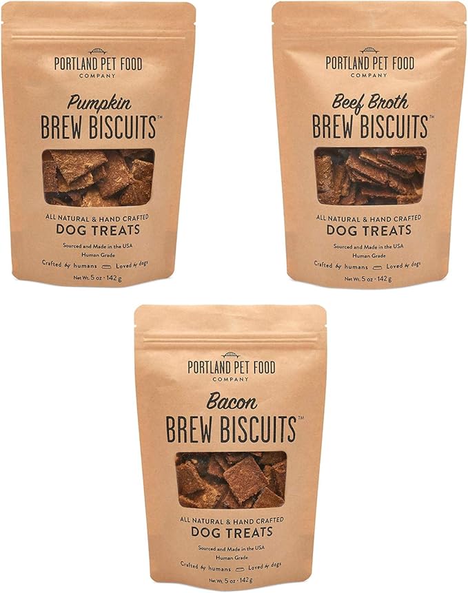 CRAFTED BY HUMANS LOVED BY DOGS Portland Pet Food Company Brew Biscuit Dog Treats (3 x 5 oz Bags Variety Pack) – Mixed Flavors –All Natural, Human-Grade, USA-Sourced and Made