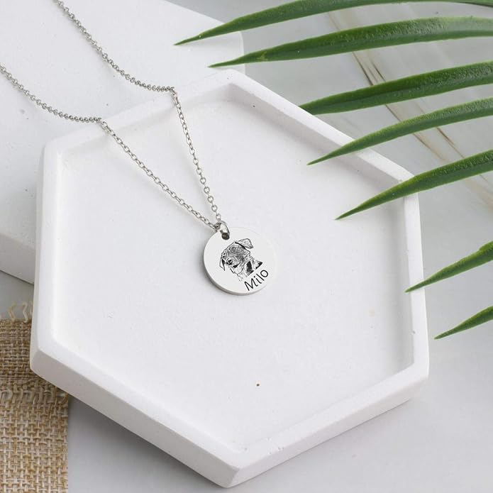 LONAGO 925 Sterling Silver Custom Dog Cat Portrait Photo Necklace Personalized Pet Engraved Picture Pendant Memorial Gift Name Jewelry for Women Mom