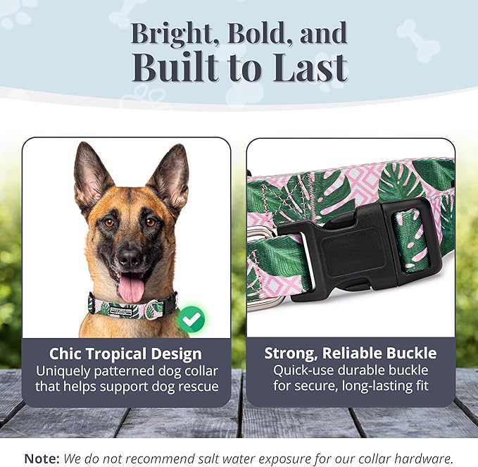 Lucky Love Dog, Tropical Matching Dog Collar & Leash Set, Soft & Comfy, Vivid Pink Color Collar and Leash for Female Male Dogs - (Large, Laguna Combo)