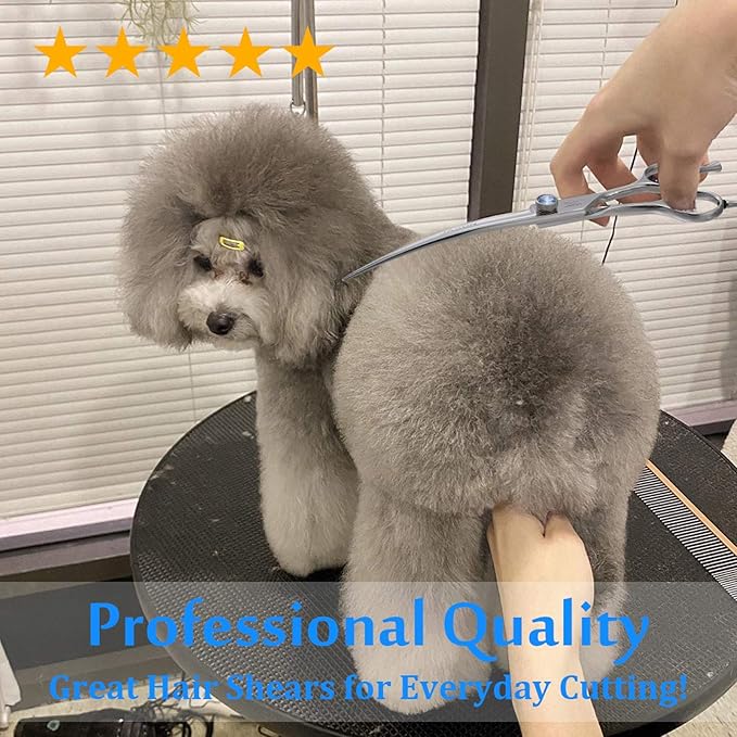 - This curved scissors for dog grooming, is lightweight and exceptionally comfortable, and suitable for all dog groomers, whether a beginner or experienced