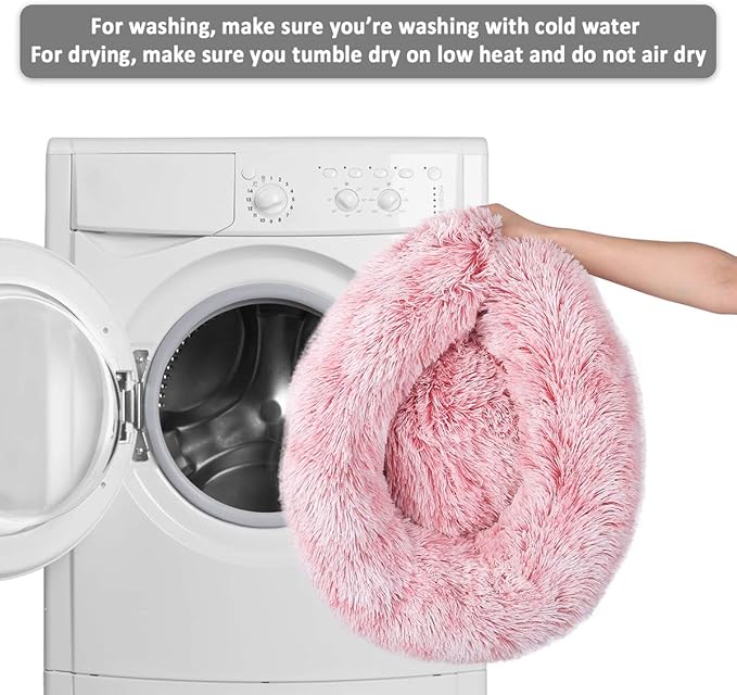 • ✔ Machine Washable for Easy Cleaning: Made with durable nylon and luxurious faux fur, this bed is both practical and comfortable. It’s filled with premium materials and is machine washable (gentle cycle) and dryer-safe (low heat), making it a breeze to keep fresh and free of pet hair or odors. (Pro tip: Avoid air-drying to prevent fur tangling.)