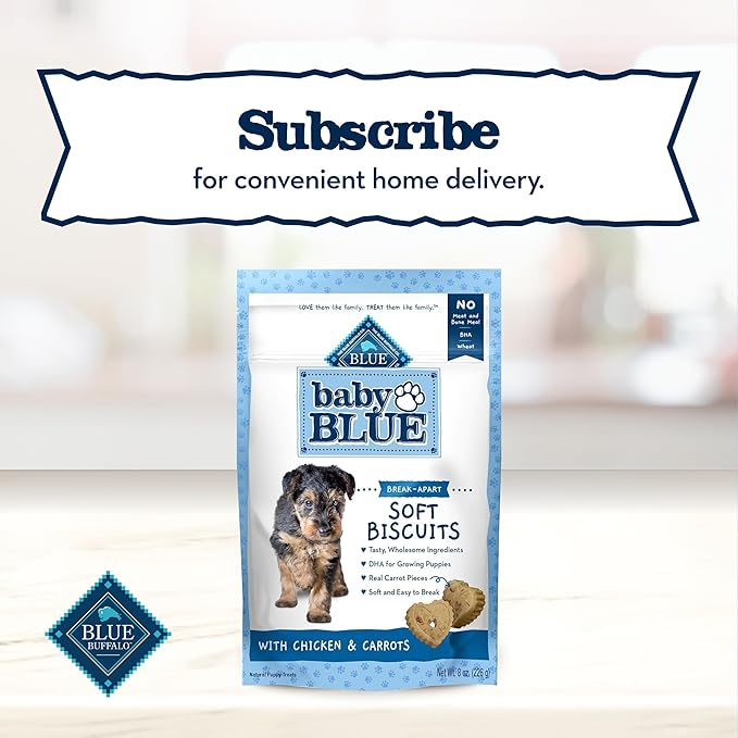 Blue Buffalo Baby Blue Soft Biscuits with DHA, Natural Dog Treats for Puppies, Great for Training, with Chicken & Carrots, 8-oz Bag