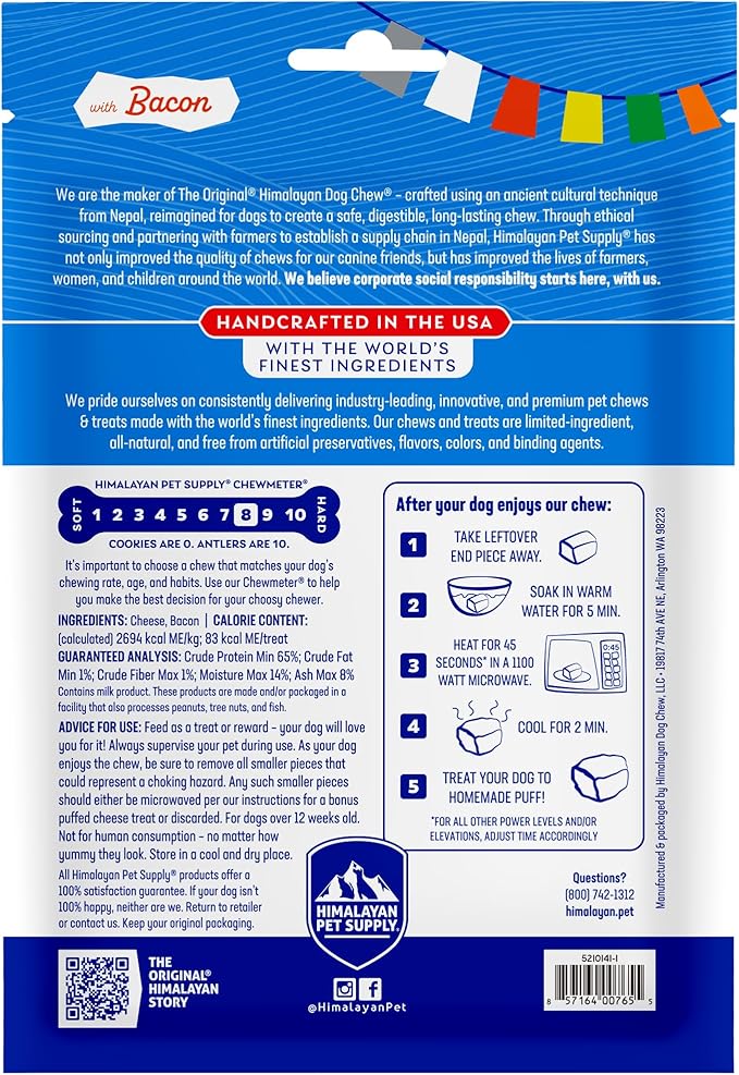 Himalayan Chew Original Yak Cheese Chew, Bacon, 3 Small Sticks, 1.1 oz, Gluten Free, Healthy Treats, Grain & Lactose Free 100% Natural, Long Lasting Chews for s Under 15 lbs