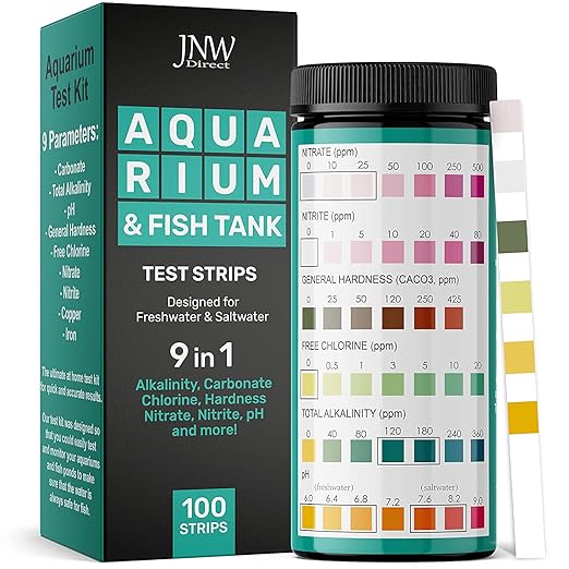 JNW Direct Aquarium Test Strips - 9-in-1 Aquarium Test Kit with eBook - Aquarium Water Test Kit with Quick and Accurate Fish Tank Test Strips - 100 Test Strips