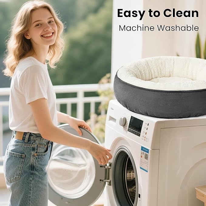 Love's cabin Round Donut Cat and Dog Cushion Bed, 20in Pet Bed for Cats or Small Dogs, Anti-Slip & Water-Resistant Bottom, Super Soft Durable Fabric Pet beds, Washable Luxury Cat & Dog Bed Dark Grey