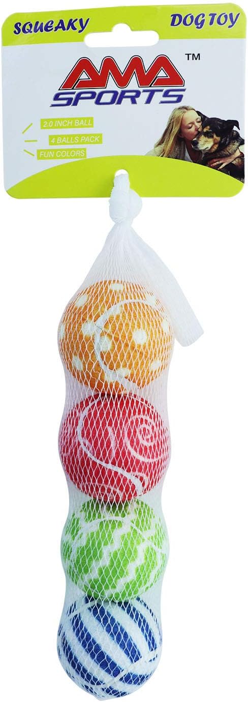 AMA SPORT Squeaky Tennis Balls for Dogs 4 Pack 2.0" Small Tennis Balls for New Puppy Small Dog Toys for Fetch, Exercise, Outdoor Play