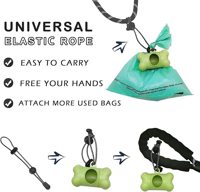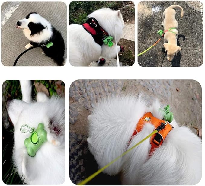 Dog Poop Pickup Bags Holder Dispenser with 1 Roll Random Color Leak-proof Scented Doggy Waste Bags and Carabiner with Safety Lock Plus Hook and Loop Fastener Never Loose on Leash Lead Again (Green)