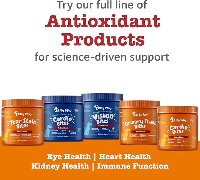 - Healthy Heart = Happy Pup! = Zesty Paws Cardio Bites are premium pet chewables that contain a blend of ingredients that promote healthy cardiovascular function for your canine companion.