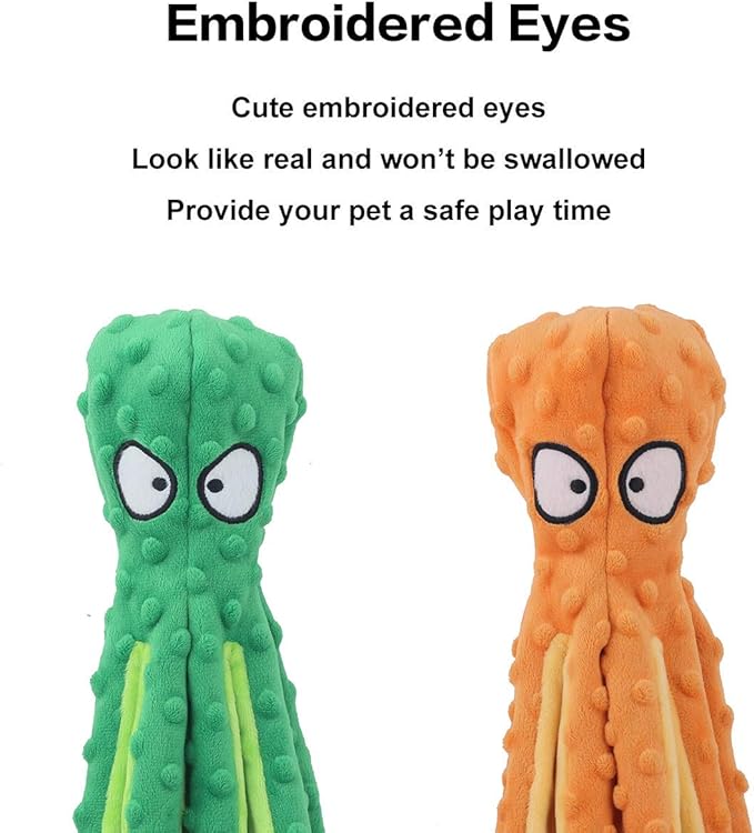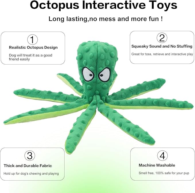 Dog Squeaky Toys Octopus - No Stuffing Crinkle Plush Toys for Puppy Teething, Durable Interactive Chew Toys for Small, Medium and Large Dogs Training and Reduce Boredom, 2 Pack
