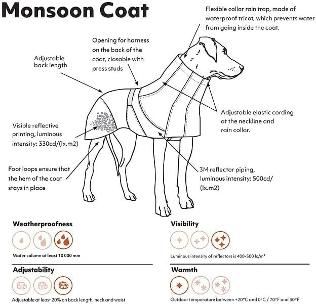 About This The Monsoon raincoat is an essential piece of protective gear for every dog in rainy, windy or muddy... Read more