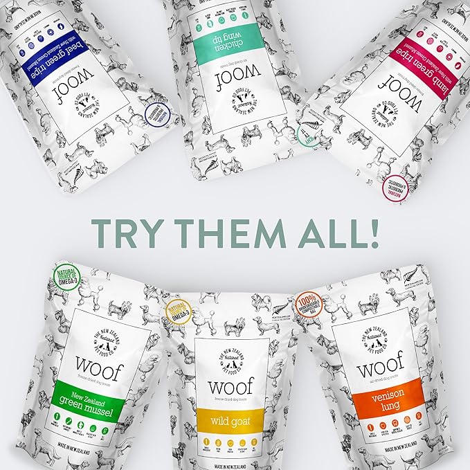 - SATISFACTION GUARANTEED: Our treats are healthy and delicious and made to suit even the pickiest of eaters. If your pet doesn't love WOOF, we will happily refund your purchase.