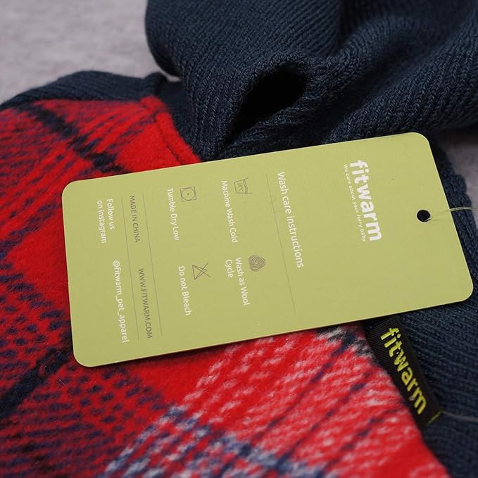 Fitwarm Tartan Plaid Dog Hoodie, Knitted Dog Clothes for Small Dogs Boy, Pet Sweater with Hood, Cat Fleece Lined Winter Outfit, Red, Navy Blue, Medium