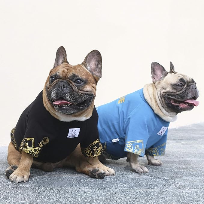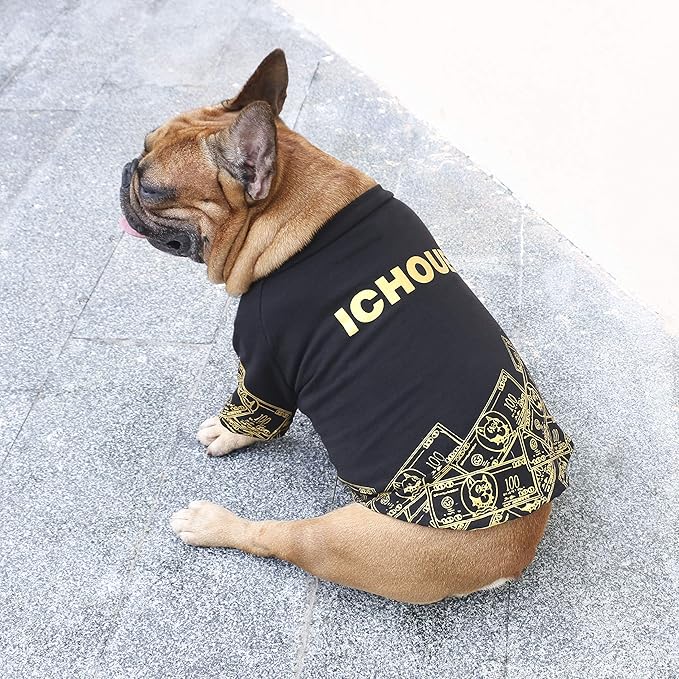 iChoue Corgi Shiba Inu T Shirts Clothes for Medium Dogs Large French Bulldog Frenchie Pug English Pitbull Boston Terrier - Black Money, L Plus