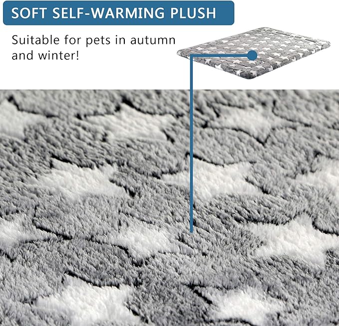 KROSER Fancy Crate Pad Bed Mat Reversible (Cool & Warm), Machine Washable, for Small to XXX-Large Dogs, Grey, Navy, Star Pattern