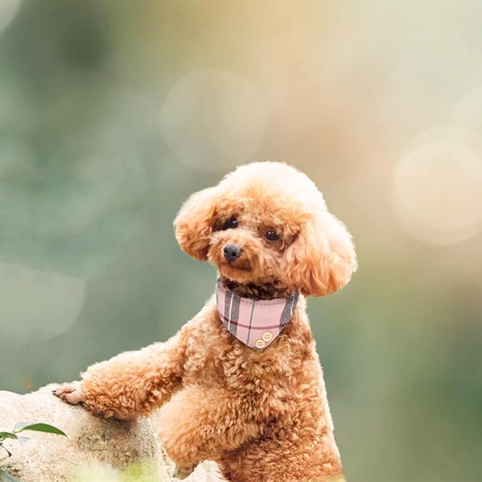 EXPAWLORER Dog Collar and Leash Set - Classic Plaid Dog Bow Tie and Dog Bandana Collar with Bell, Dog Leash Tangle Free, Adjustable Collars for Small Medium Large Dogs Cats, Holiday Ideal Gift