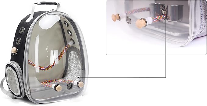 Bird Feeder Cups with Clamp Mount on Standing Perch, 2 Stainless Steel Cups for Food and Water, Compatible for halinfer's All Bird Carrier and Backpack Wooden and Rope Perch