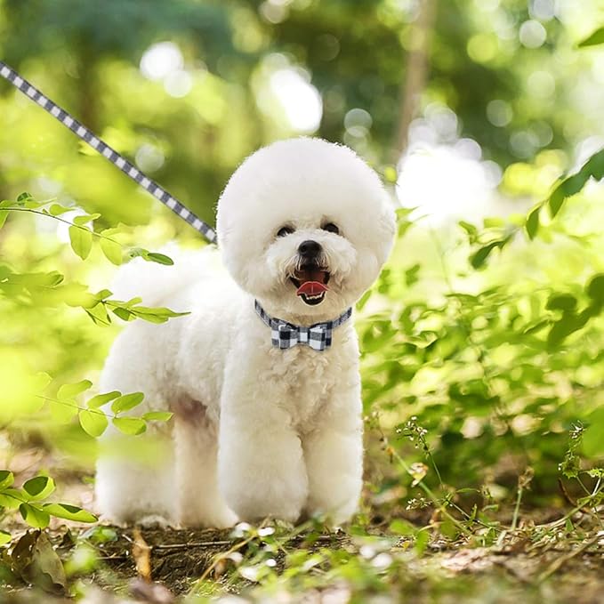 • Classic & Fashion: The classic white & black buffalo check pattern is not out of date, very stylish. The bow tie collar makes your dog look very gentle, and the irregular bandana collar is also very cute.