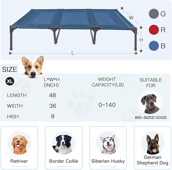 suddus Elevated Dogs Bed Waterproof Outdoor, Portable Raised Dog Bed, Dog Beds Off The Floor, Dogs Bed Easy Clean Indoor or Outdoor Use, X-Large, Blue