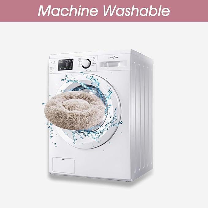 Calming Dog Bed & Cat Bed, Anti-Anxiety Donut Cuddler Warming Cozy Soft Round Bed, Fluffy Faux Fur Plush Cushion bed for Small Medium Dogs and Cats (20"/24"/27"/30")