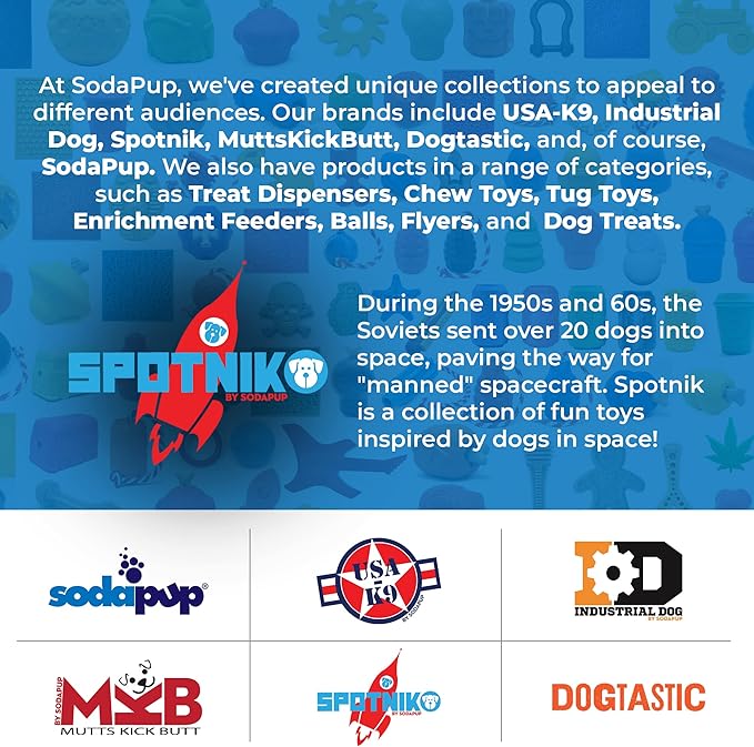 SodaPup Spotnik Flying Saucer - Durable Dog Treat Dispenser & Chew Toy Made in USA from Non-Toxic, Pet Safe, Food Safe Natural Rubber for Mental Stimulation, Problem Chewing, Calming Nerves, & More